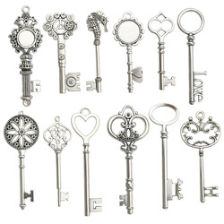 125 पीसी मिश्रित प्राचीन शैली कांस्य पीतल लटकन विंटेज कंकाल कुंजी सेट DIY आभूषण बनाने के लिए आकर्षण, शादी की पार्टी के पक्ष में